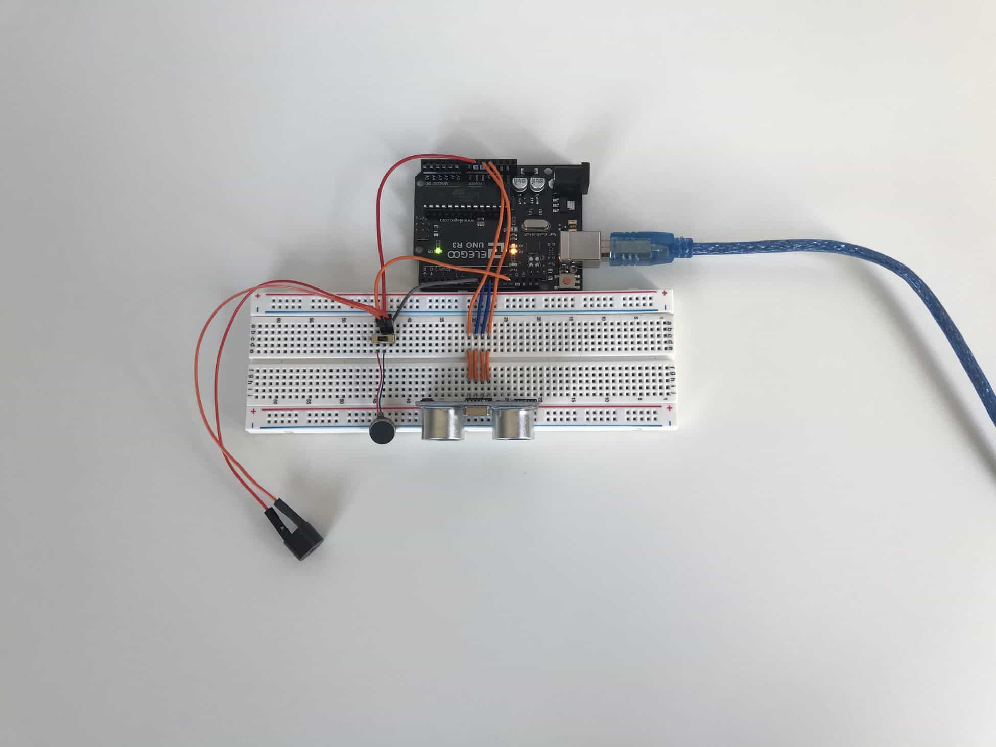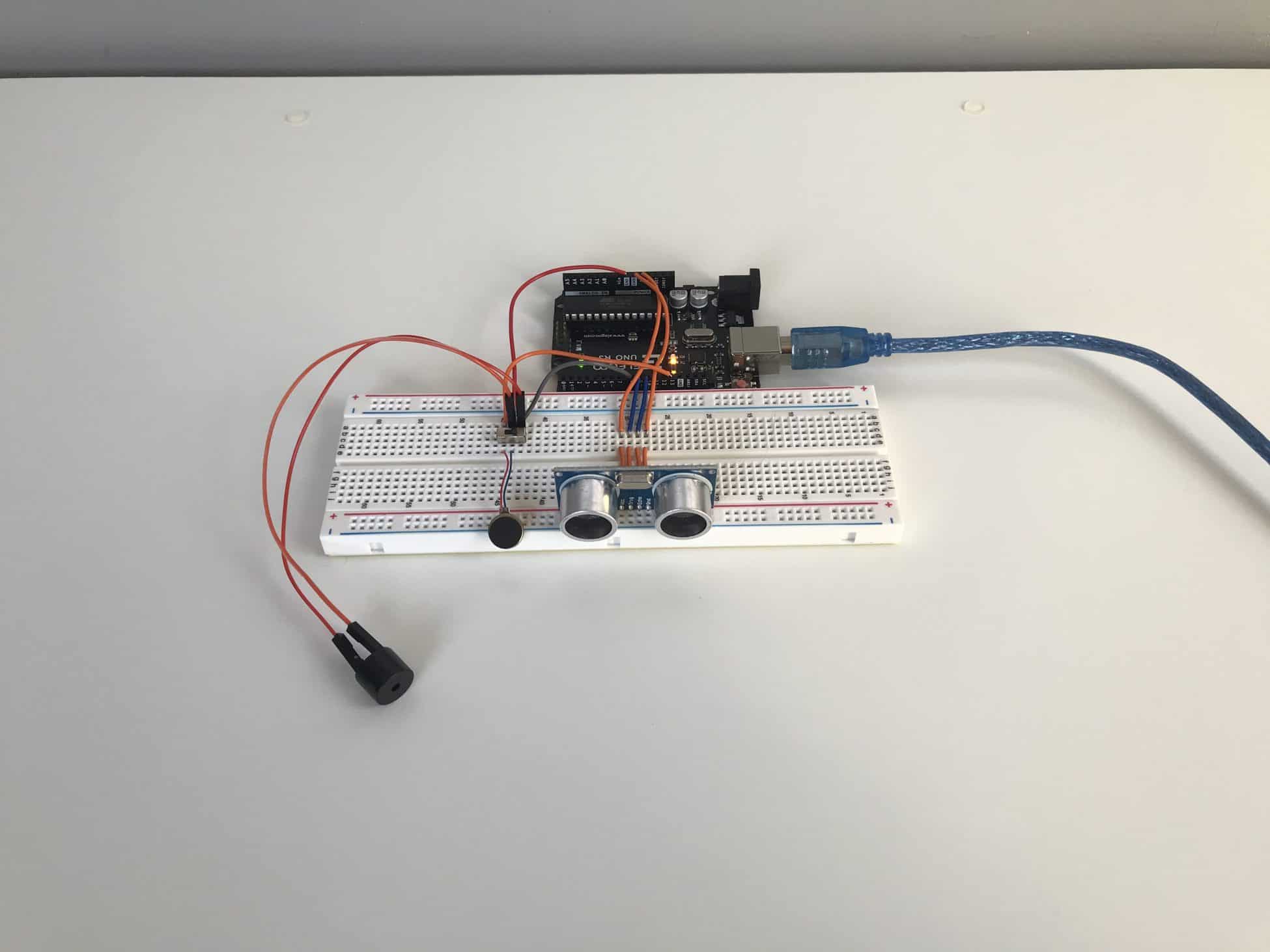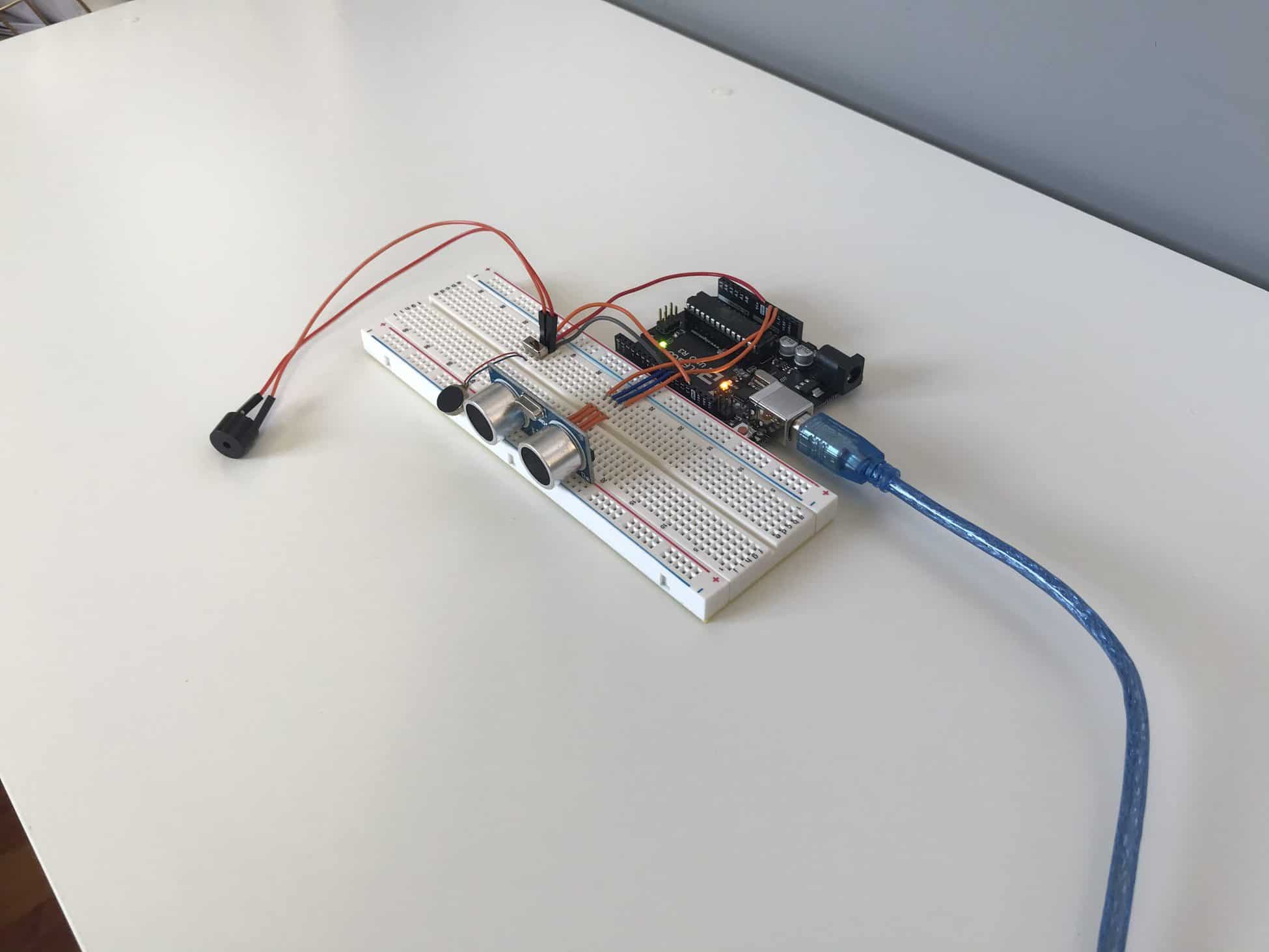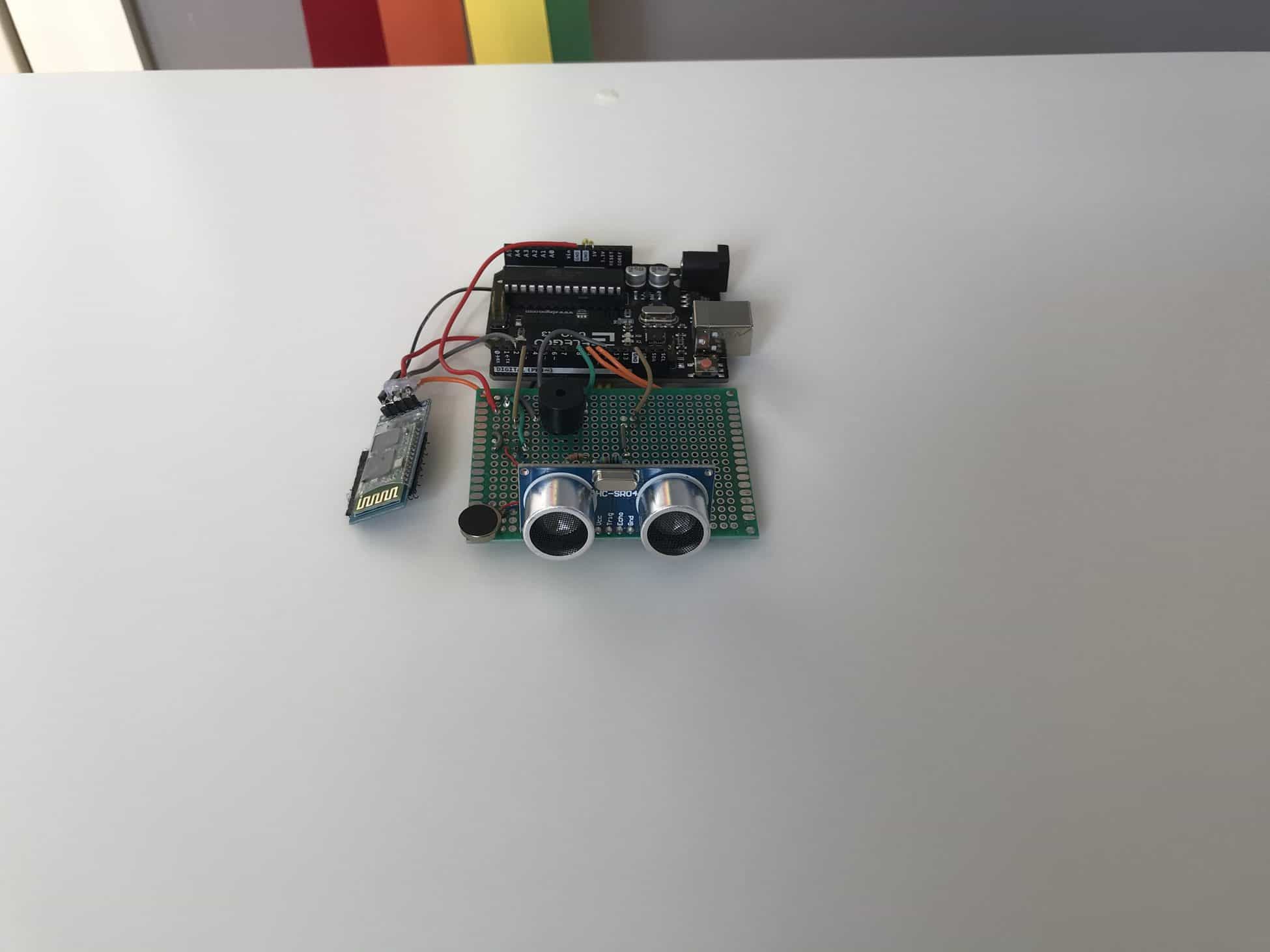 I started by soldering the ultrasonic sensor onto the perfboard and then soldering 4 jumper wires onto the 4 pins of the ultrasonic sensor, which would connect directly into the GND, VCC, TRIG, and ECHO pins on my Arduino. Once the ultrasonic sensor was securely soldered, I moved throughout the perfboard, trying my hardest to replicate the circuits and connections from my breadboard. After soldering for what felt like many hours, I began feeling like a surgeon, carefully and precisely connecting delicate jumper wires with scolding metal through roughly 0.042 inch diameter holes––my pair of tweezers and forceps certainly added to the surgeon persona I was imagining.